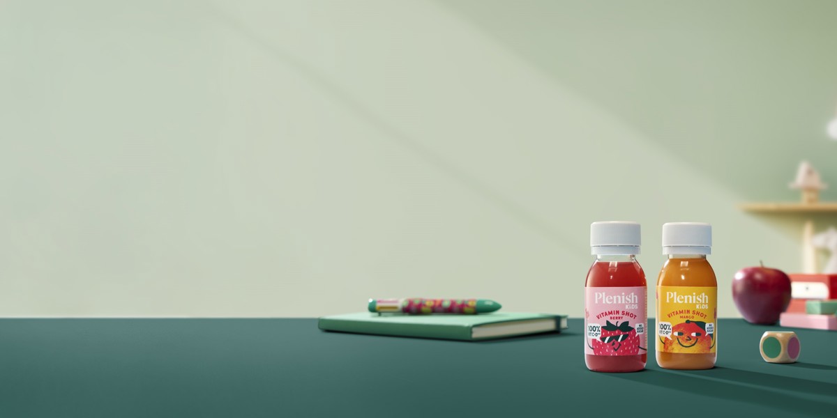Plenish Kids is the UK’s first vitamin shot for children launched in two flavours, each delivering 100% of daily vitamin C and D, and a source of iron and zinc to support immunity and healthy development