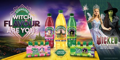 Inspired by the film’s iconic characters, Elphaba and Glinda, the campaign will encourage shoppers to answer, ‘Witch Flavour Are You?’, driving interaction at purchase and promoting trial across the limited-edition range. To further increase campaign visibility Robinsons core Orange and Apple & Blackcurrant will feature exclusive Wicked-themed on-pack designs across its 750ml and 1.75 litre Double Concentrate formats.